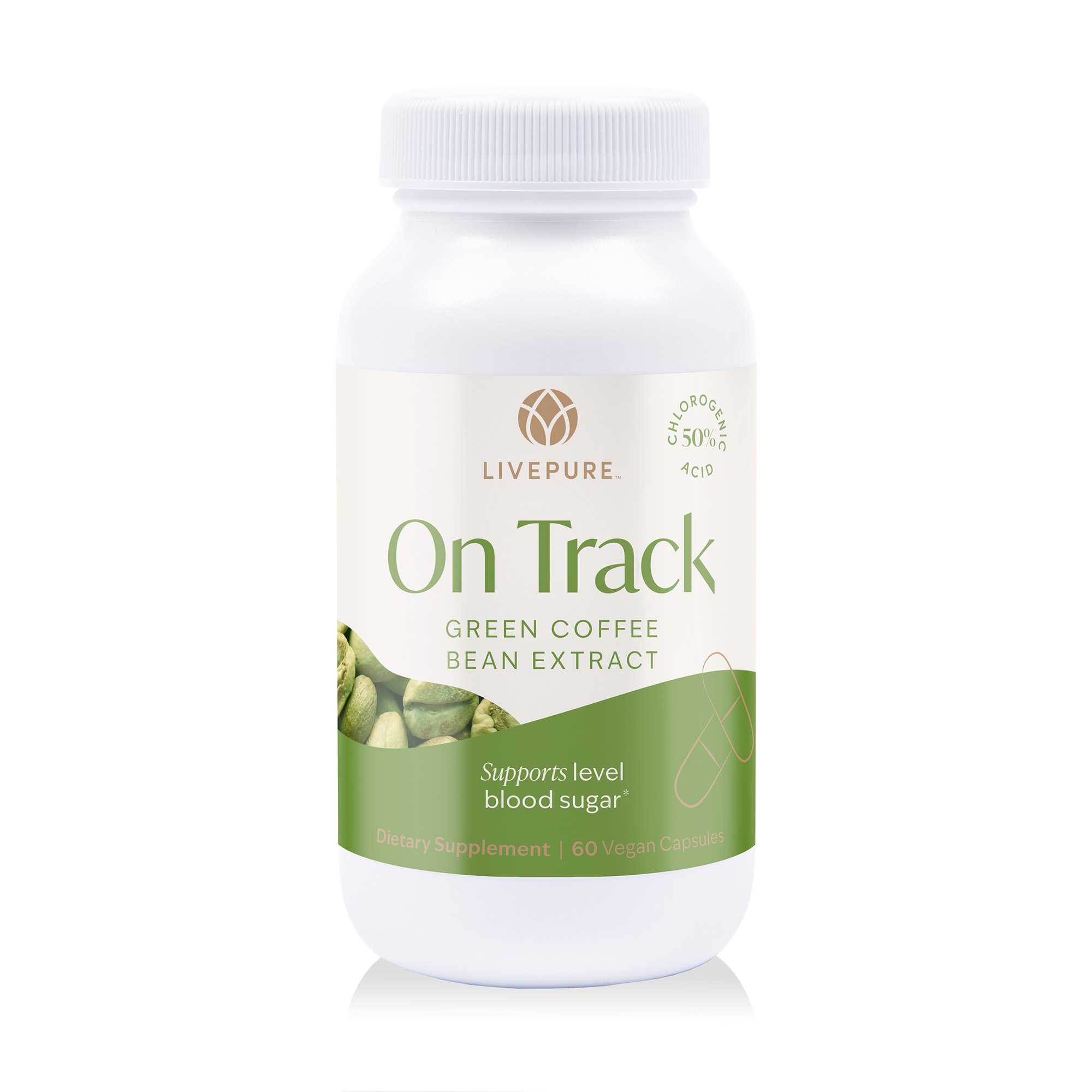 On Track supports weight management by helping maintain balanced blood sugar and a healthy metabolic response. Made with plant-based chlorogenic acid from decaffeinated green coffee beans, it provides antioxidant support while helping promote steady energy and fewer cravings—when paired with a balanced diet and regular exercise.*